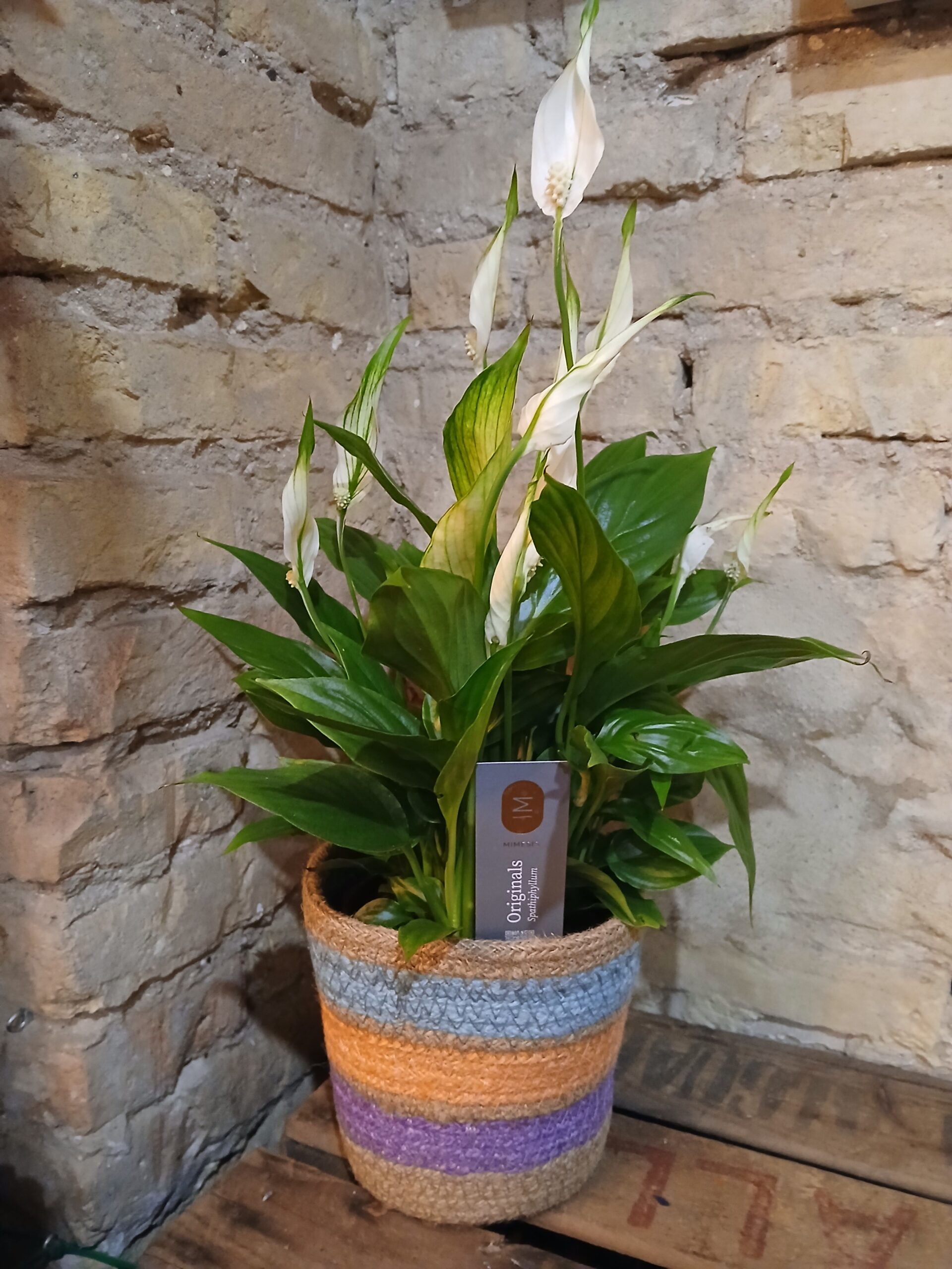 Preciosa y coqueta planta de interior, de fáciles cuidados, purifica y oxigena los espacios de interior. Viene con una divertida cesta colorida.