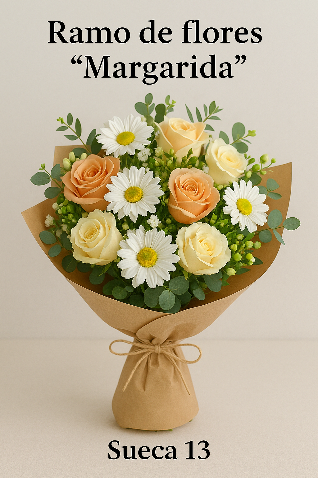 El Ramo de flores “Margarida” es una propuesta pensada para quienes desean sorprender con un detalle lleno de sensibilidad y elegancia. En Sueca 13 trabajamos cada composición con dedicación artesanal, seleccionando flores frescas que transmiten cercanía, alegría y un toque natural que nunca pasa desapercibido. “Margarida” destaca por su armonía cromática, su ligereza visual y la calidez que aporta a cualquier ambiente, convirtiéndose en un regalo perfecto para celebrar momentos significativos.